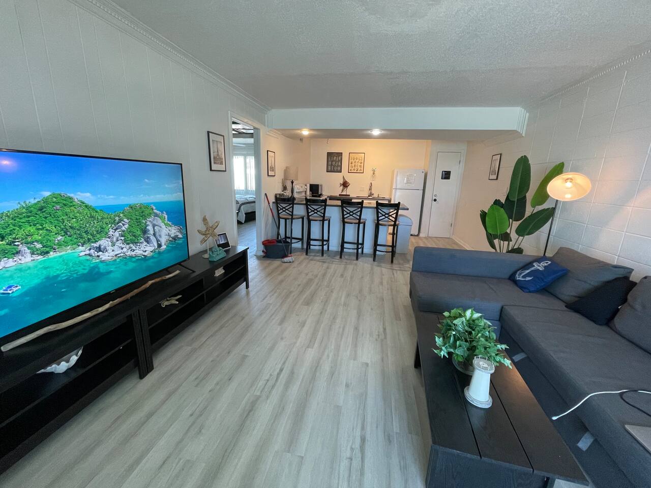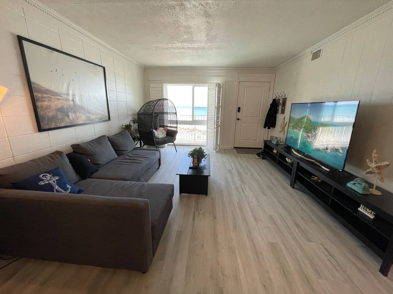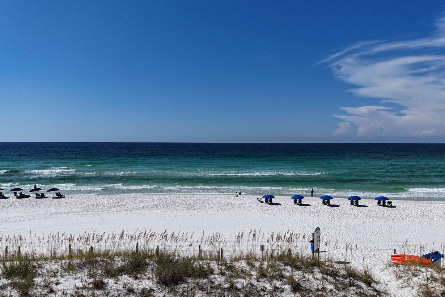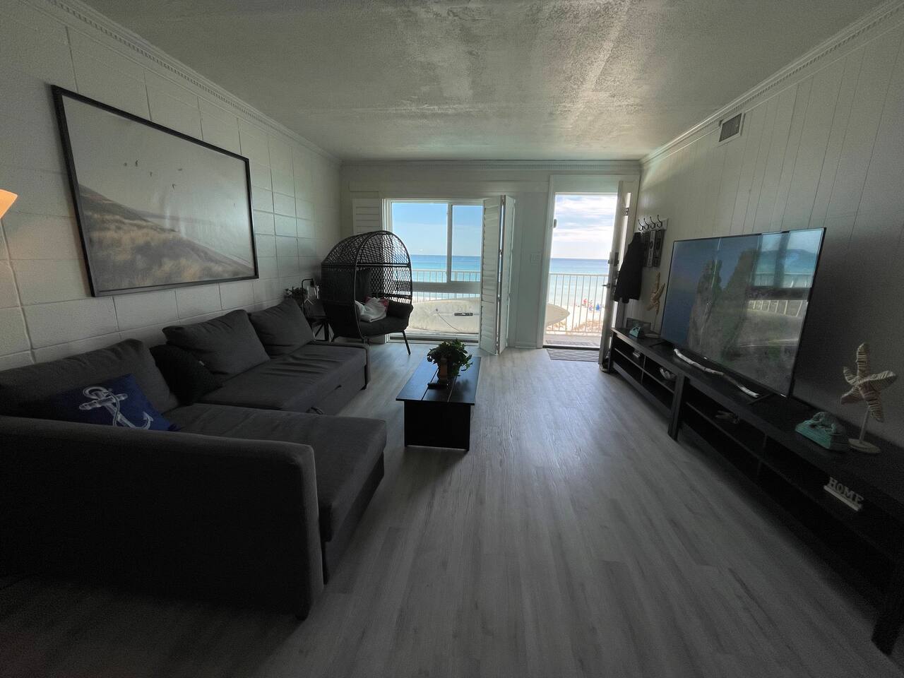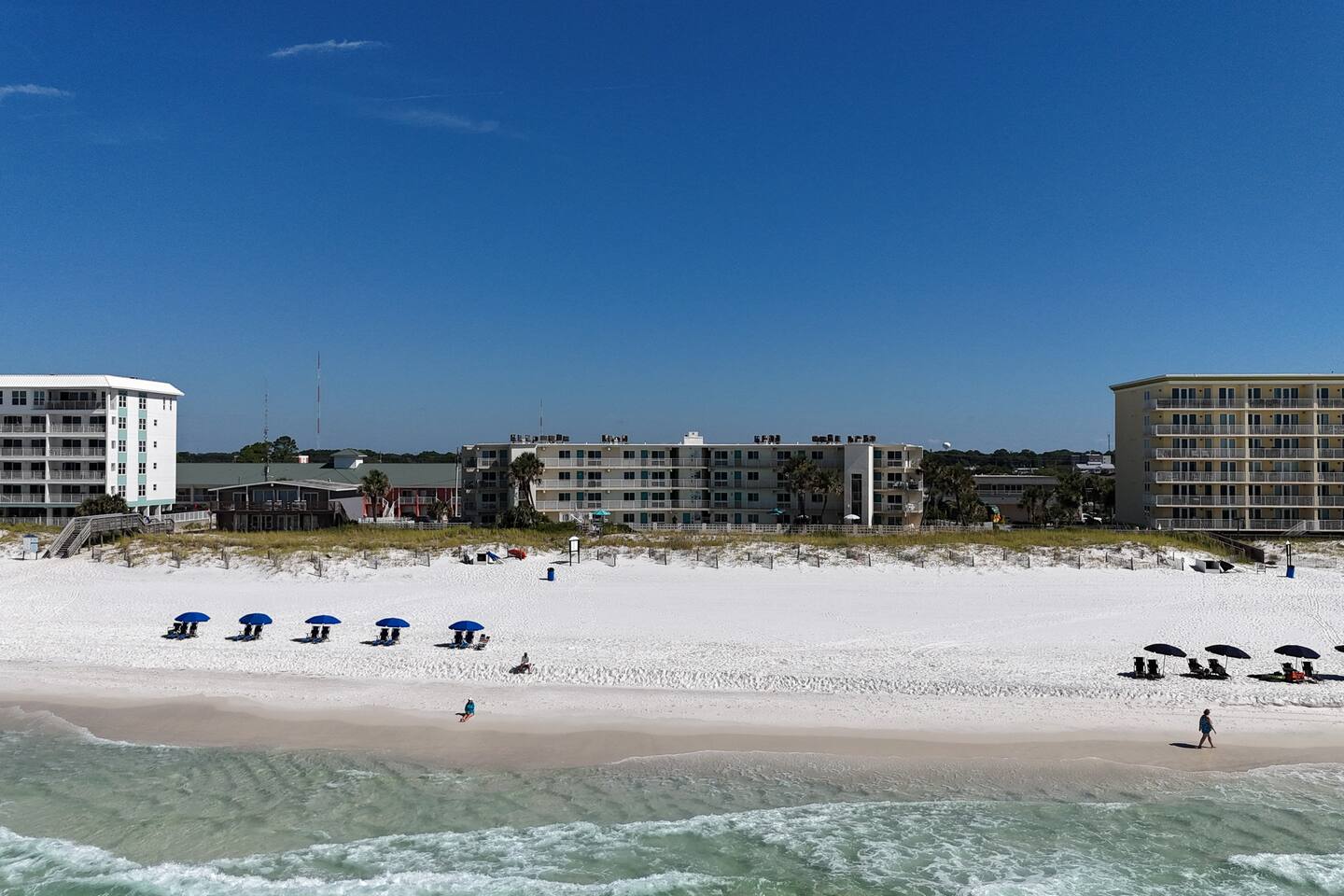 Inside you will find welcoming spaces accented with modern furniture, tasteful decor, and plenty of space to help you unwind. The living room and front bedrooms have beach-front views. Kitchen comes equipped with your standard amenities such as a dishwasher, stove, and sink. As well as plates, cups, pans, pots, and cutlery. Initial basic toiletries are included. Toiletries are not replenished during the stay. Towels and linens are provided but not replaced daily. Additional housekeeping services provided at a cost. The facilities include a beach front pool, BBQ grill, and beach chair rentals (guest can rent directly from beach service). This property is directly on the beach. It is conveniently located within walking distance of a shopping, restaurants, and only a 5 mile drive to Destin proper.
